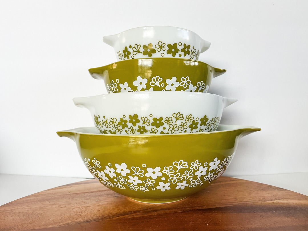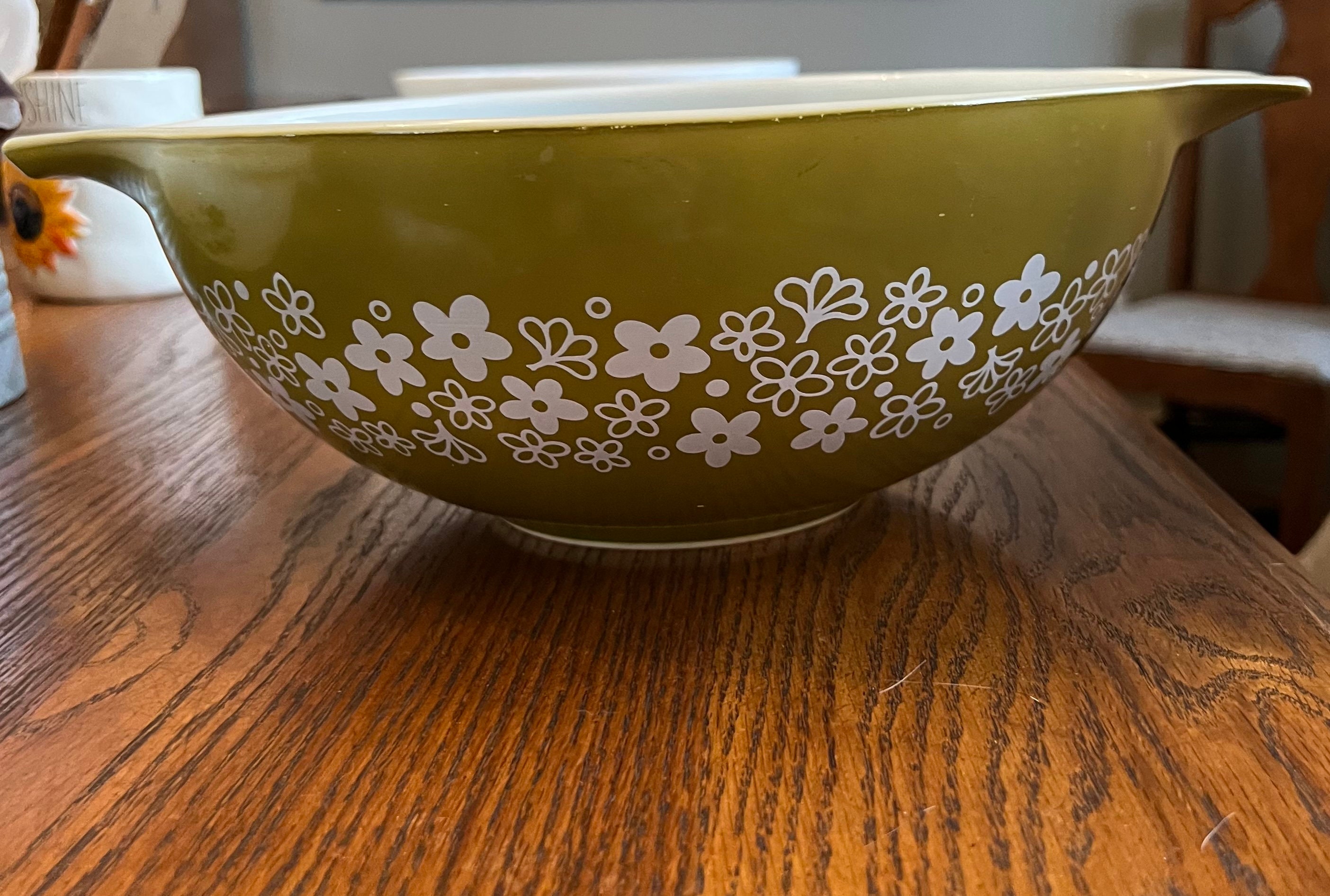 Pyrex crazy daisy/spring blossom bowl. Pyrex crazy daisy spring blossom cinderella mixing bowl 443 nesting. Pyrex crazy daisy spring blossom cinderella bowl set. Pyrex spring blossom cinderella bowls, crazy daisy mixing bowls. Vintage pyrex spring blossom crazy daisy cinderella bowls.