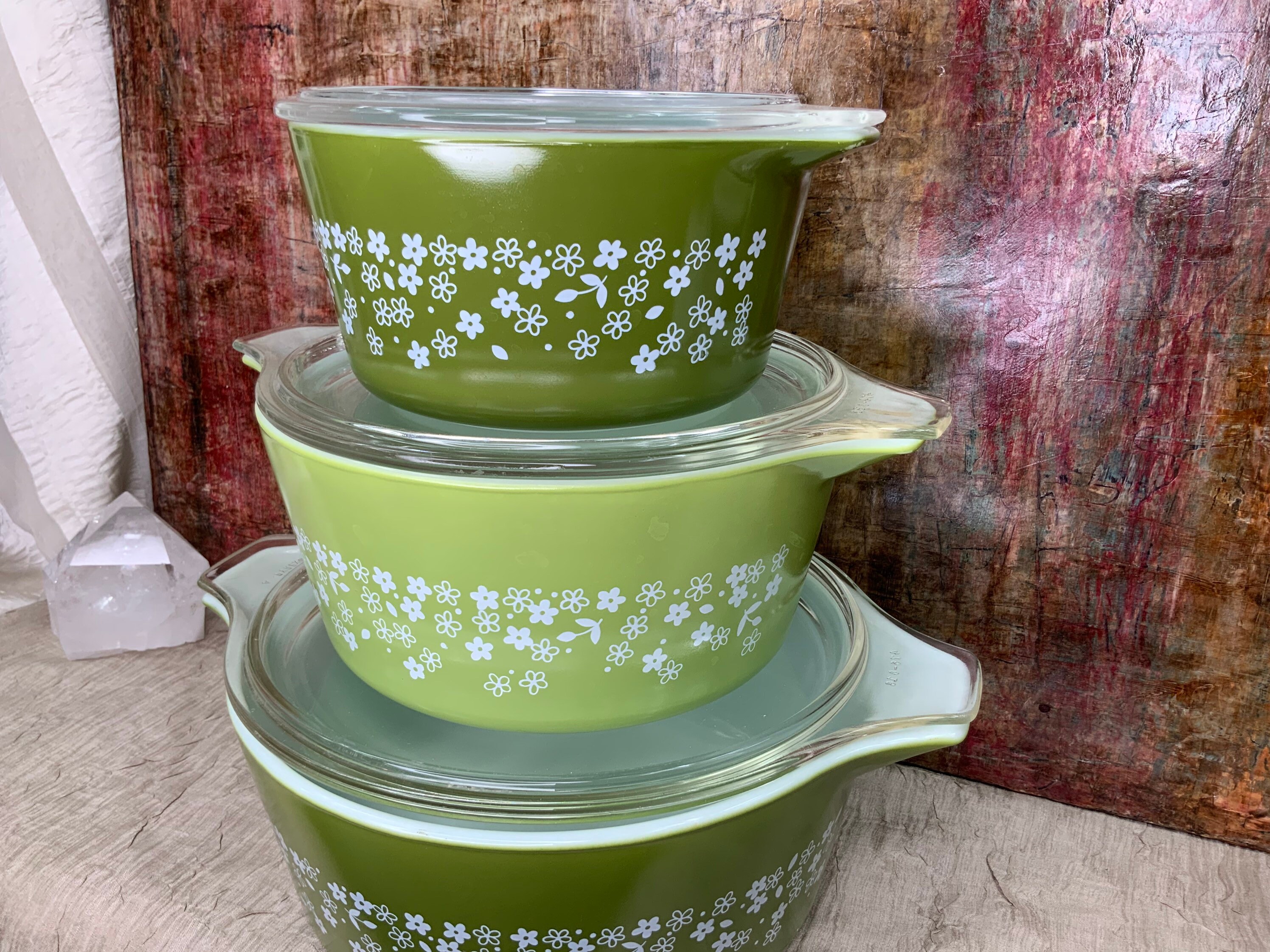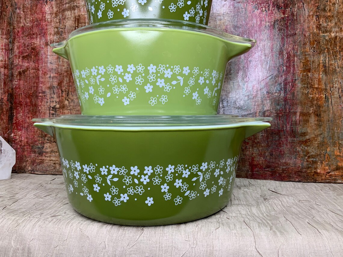 Pyrex spring blossom green casserole new in original box. Vintage pyrex spring blossom green v2 crazy daisy casserole. Vintage pyrex spring blossom green new in box 480-1 casserole set, set. Spring blossom green pyrex cinderella 1 1/2 quart casserole dish with. Vintage pyrex spring blossom green casserole dish 1.5 quart