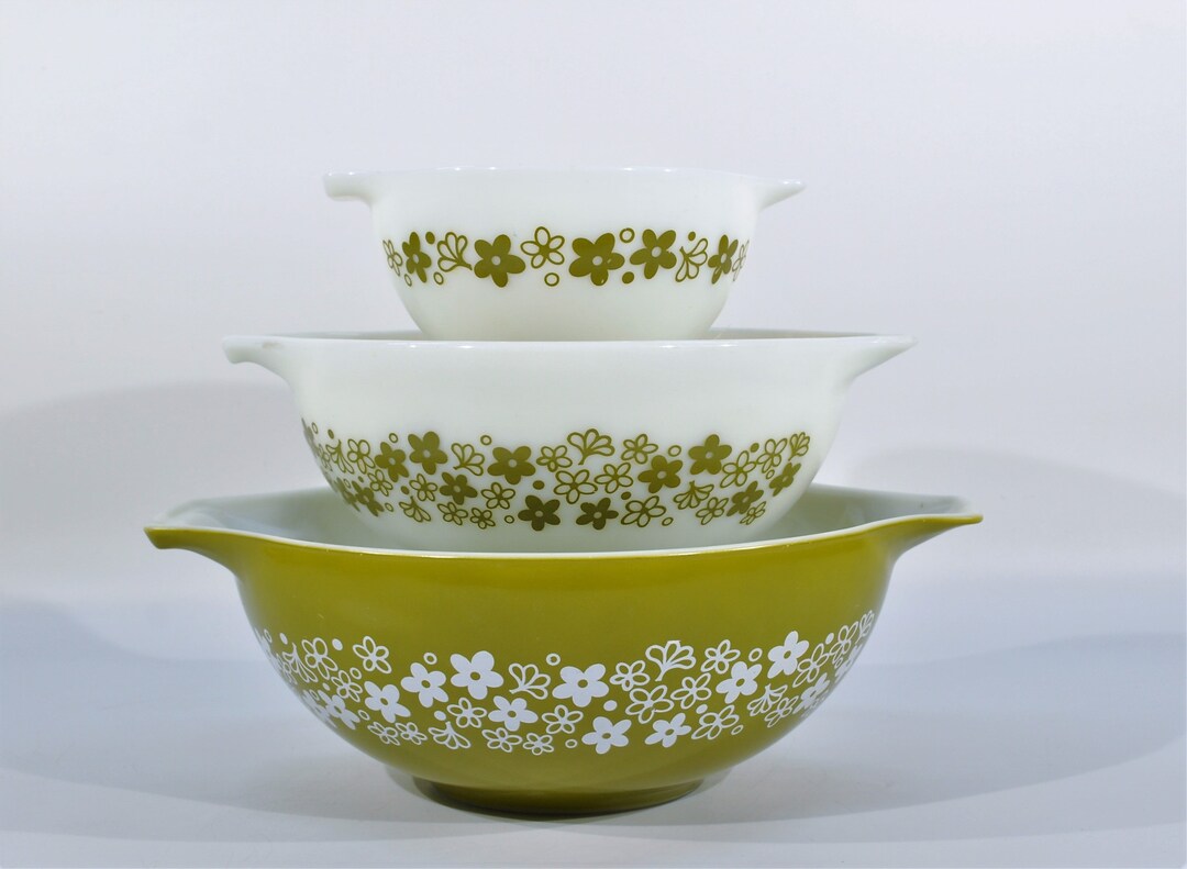 Pyrex ‘spring blossom green mixing bowls set of 3. Pyrex vintage spring blossom green mixing bowls bowl set dishes etsy white daisy complete flower antique sold sets pattern old. Vintage spring blossom green pyrex mixing bowl complete set. Spring pyrex green blossom bowl. Vintage pyrex spring blossom mixing bowls nib pyrex spring