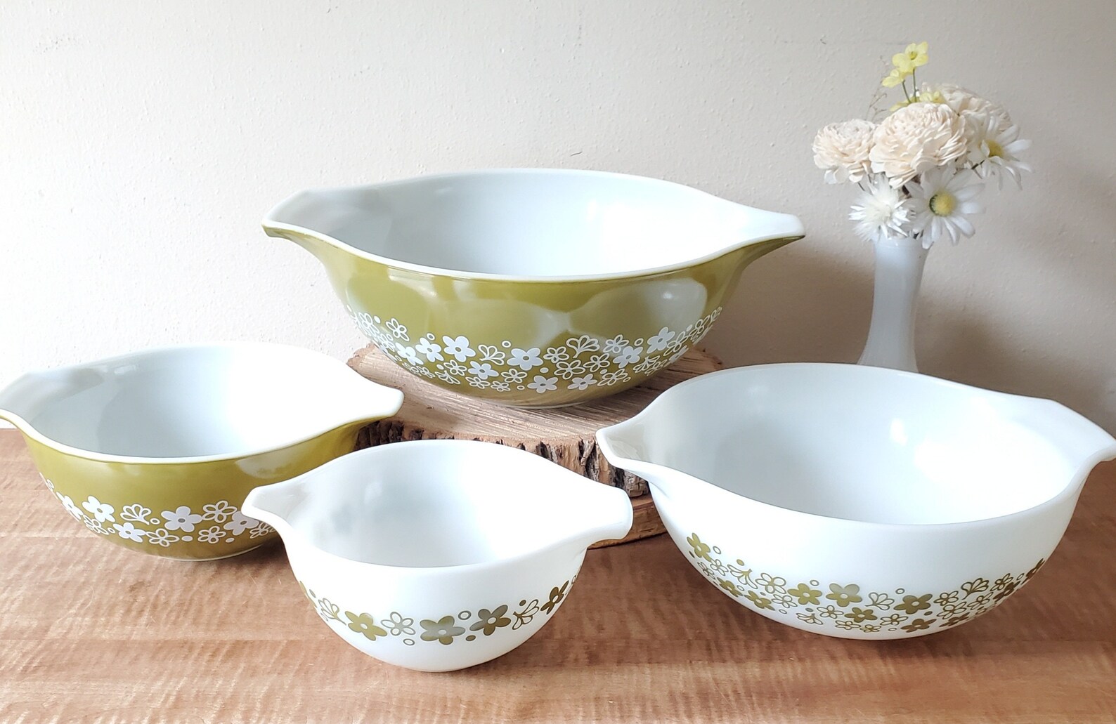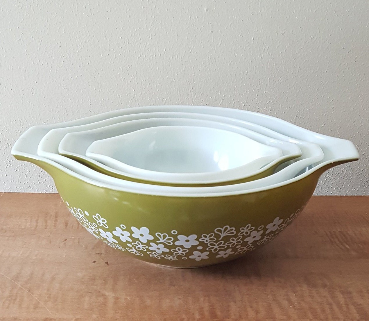 Vintage spring blossom green pyrex mixing bowl complete set. Pyrex vintage spring blossom green mixing bowls bowl set dishes etsy white daisy complete flower antique sold sets pattern old. Vintage pyrex spring blossom pattern nesting mixing bowls. Pyrex spring blossom green mixing bowl set. Vintage pyrex spring blossom mixing bowls nib pyrex spring