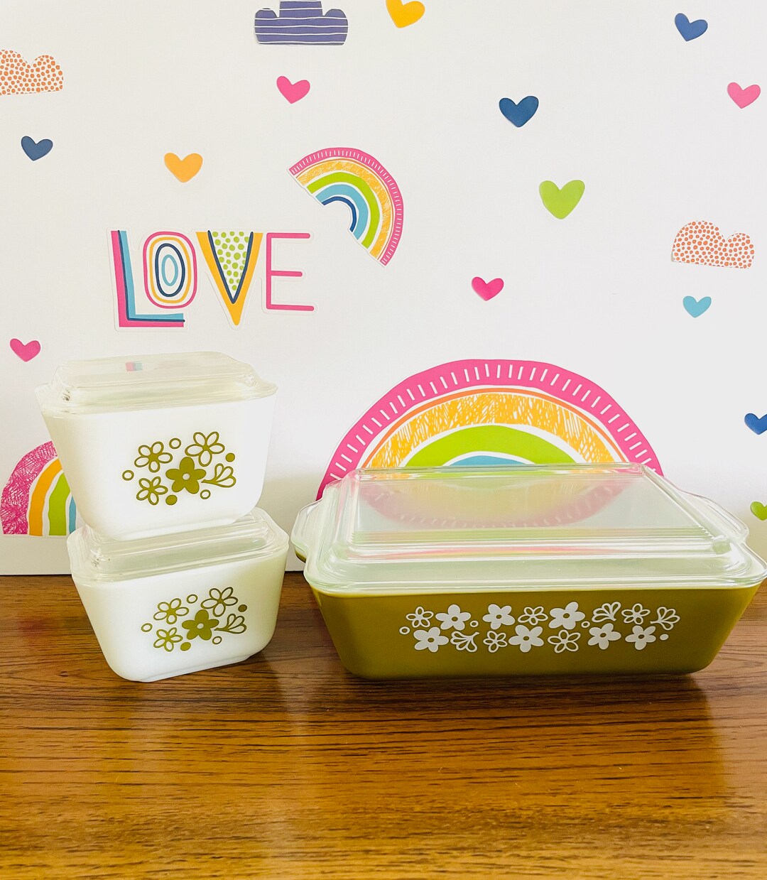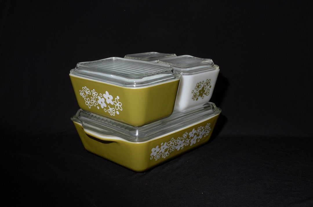 3 pyrex spring blossom refrigerator dishes crazy daisy. Pyrex spring blossom refrigerator set 500. Pyrex blossom spring box vintage choose board daisy refrigerator mint crazy orig green set. Mint ! vintage pyrex spring blossom refrigerator set, orig box green. Pyrex casserole