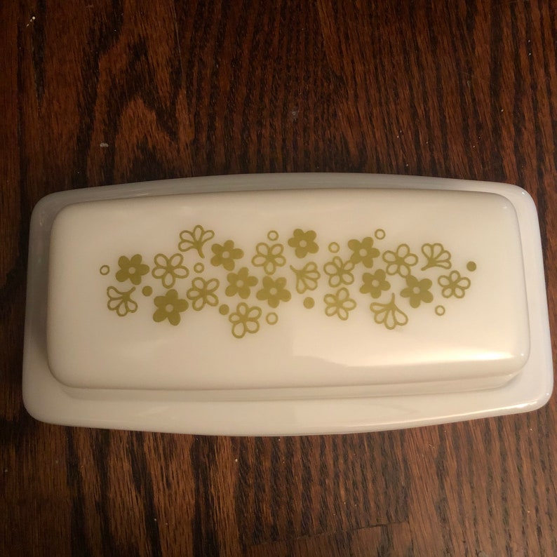 Pyrex butter dish. Dish butter corelle blossom. Vintage pyrex butter dish corelle spring blossom green crazy daisy. Spring blossom corelle butter dish with lid corning ware. Corelle spring blossom butter dish crazy daisy – antique price guide